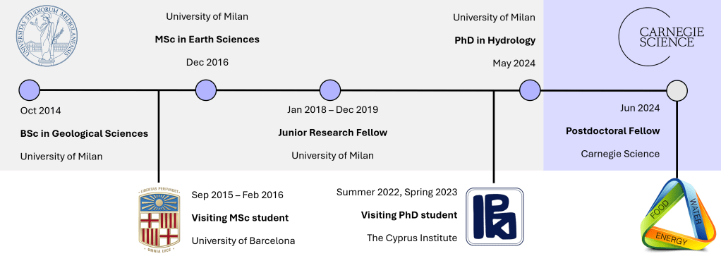 I earned my PhD in Earth Sciences at the University of Milan, focusing on the numerical modeling of the hydrological cycle in alpine environments. Before that, I tackled springs, floods, groundwater, snowpack, and karst systems — basically anything that flows, melts, or seeps through rocks! Along the way, I collected two other degrees (BSc + MSc), a lot of rain and groundwater samples, and way too many R and Python scripts.